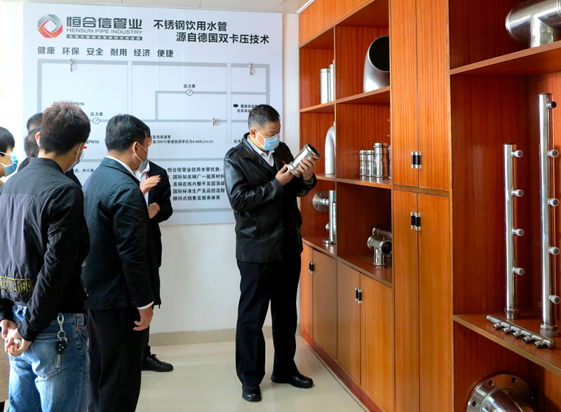 鄧建偉常委一行在恒合信管業(yè)總經(jīng)理呂春榮等公司領導的陪同下,參觀了產(chǎn)品展示廳,仔細了解恒合信高端不銹鋼水管生產(chǎn)、銷售、研發(fā)及未來發(fā)展等工作的最新進展。總經(jīng)理呂春榮介紹了公司發(fā)展情況,作為高端不銹鋼水管的國家高新技術(shù)企業(yè),恒合信有信心保持企業(yè)業(yè)績的穩(wěn)定增長。